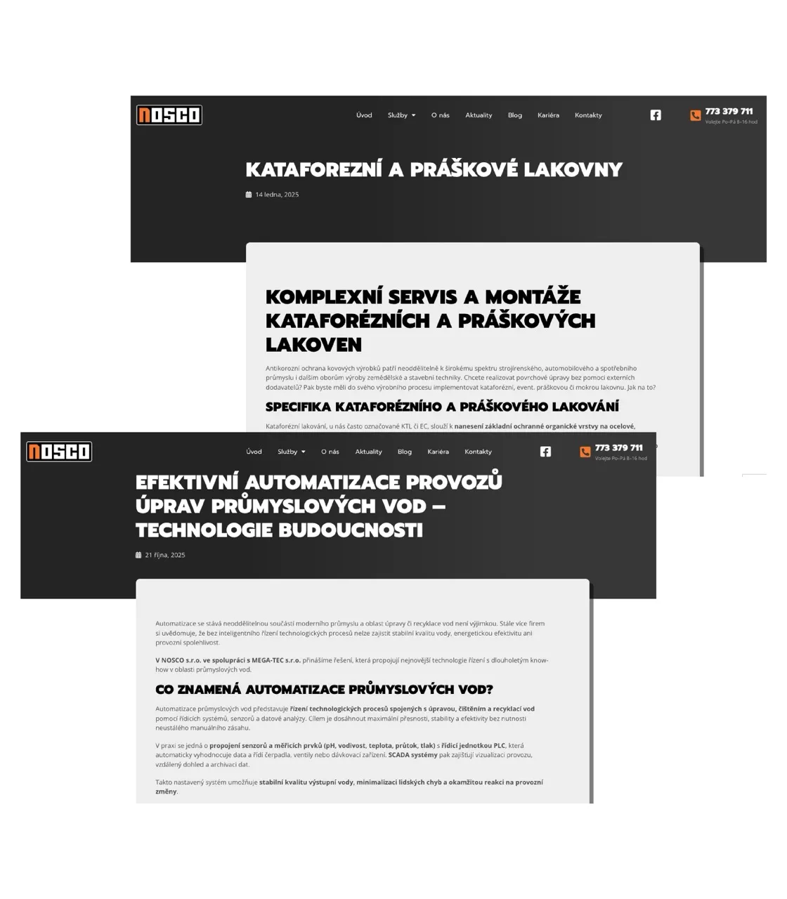 Společně s zástupci firmy jsme připravili tematické články s představením hlavních služeb společnosti a jejich vysvětlením pro příp. zájemce. Cílem byla podpora organické dohledatelnosti a podpora autority webu ve vyhledávání.