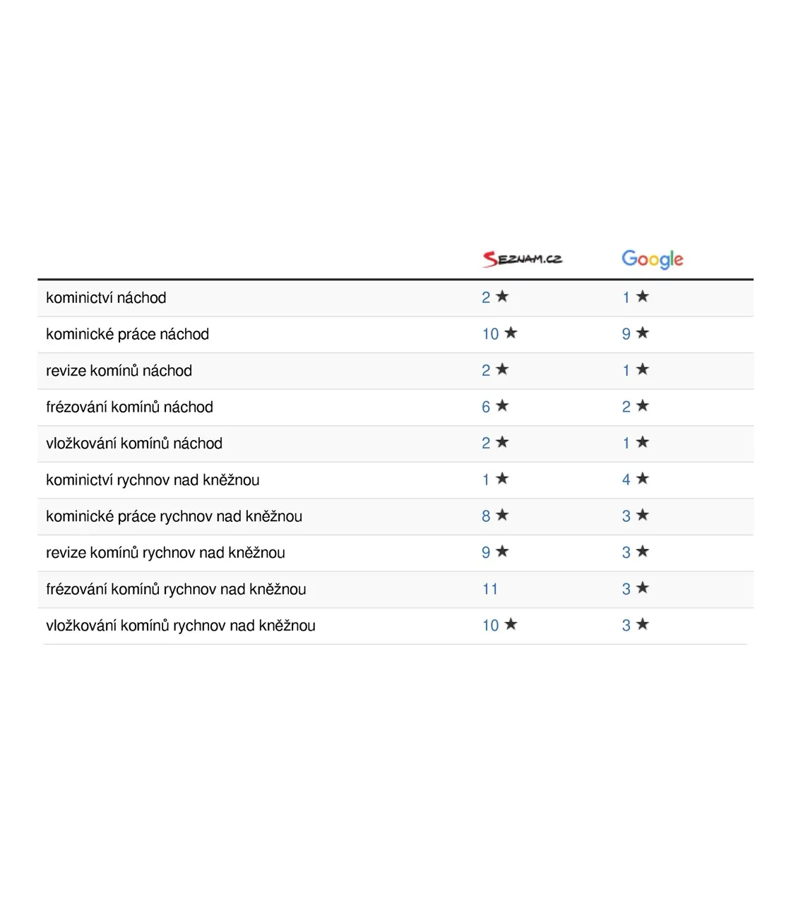 Zlepšení dohledatelnosti firmy a webových stránek na klíčová slova, přivádění relevantních návštěvníků a podpora získávání zakázek z regionu na Googlu i Seznamu.